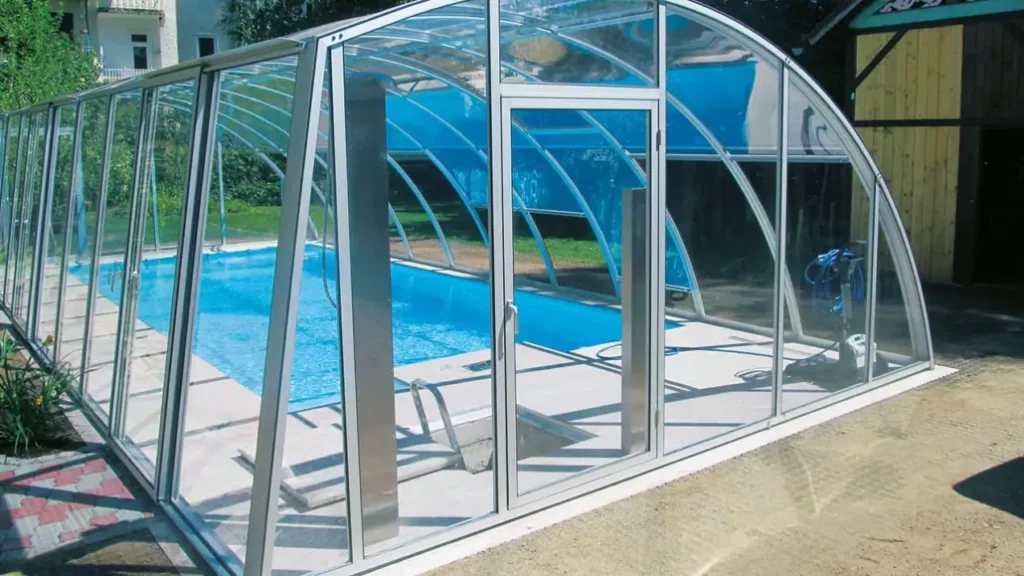 Teleskopisch schiebbare Poolhalle, entwickelt wurde die SUBLIM ursprünglich zur Überdachung von Pools mit römischer Treppe oder Ovalbecken. Inzwischen ist diese Poolüberdachung immer dann gefragt, wenn Poollandschaften mit einem zusätzlichen runden Anbau formschön und elegant abgeschlossen werden sollen.